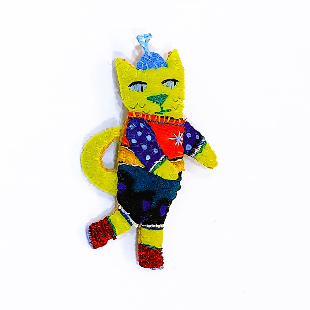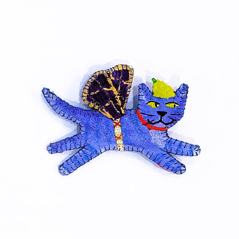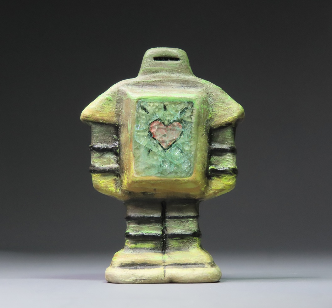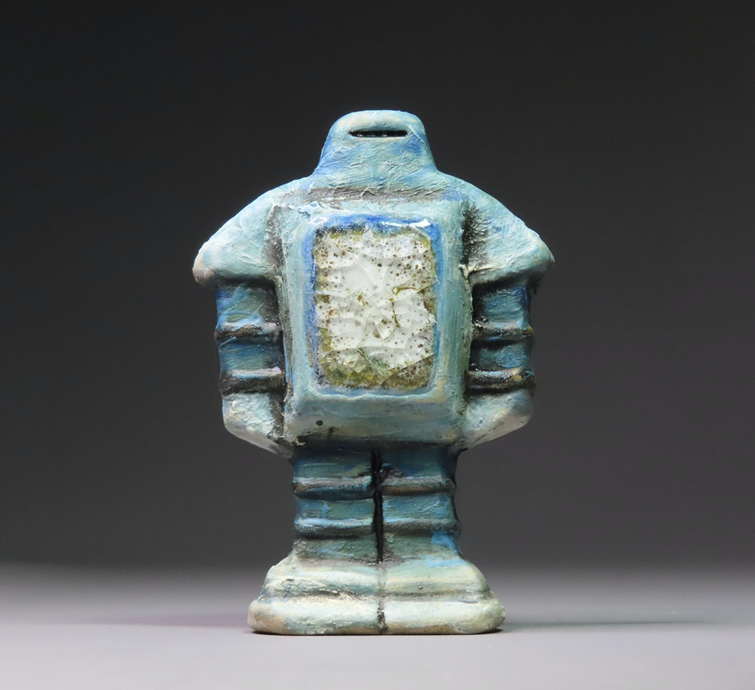Another recent series is the "Liberator Dog" works, inspired in part by Egyptian Shabti (mummy-like figurines) and Guatemalan worry dolls. If you write your anxieties down on paper, and post the paper into the opening at the back of the Liberator Dog, then the "black dog" will take your unwanted thoughts - a transference of the worries from your innner mind away from yourself.