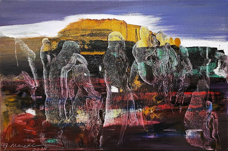Prakash Patel paints in a spontaneous manner, allowing each work to evolve intuitively.