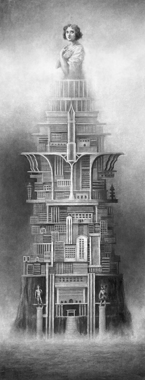Naga Tsutsumi, born in Japan in 1967, has lived in Palmerston North for more than a decade. Working from a small studio beside his home, Naga’s meticulously rendered figurative works meld influences from his Japanese ancestry with imagery from Western culture and history.