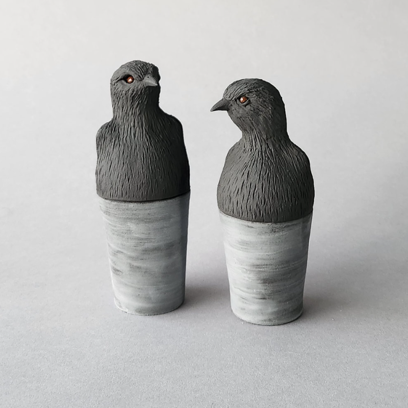 - Black Robin Keepsakes, coiled stoneware, each approx 150 x 60 x 60 mm