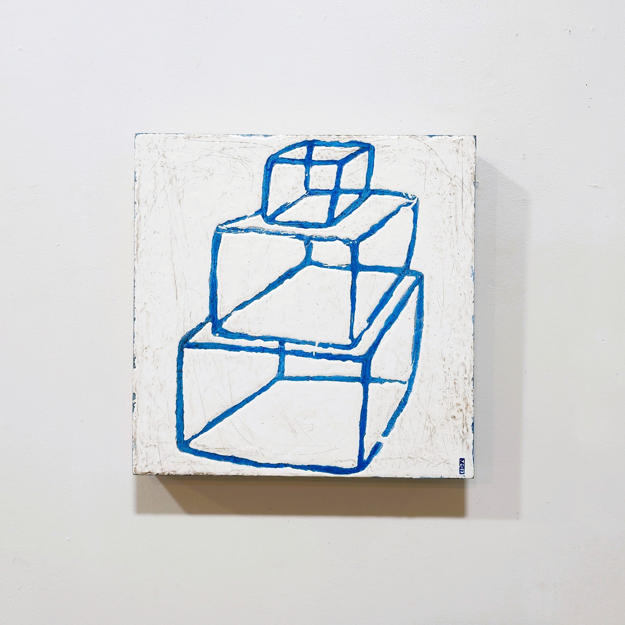 - Bulding blocks, mixed media on laminated wood block, 255 x 255 mm