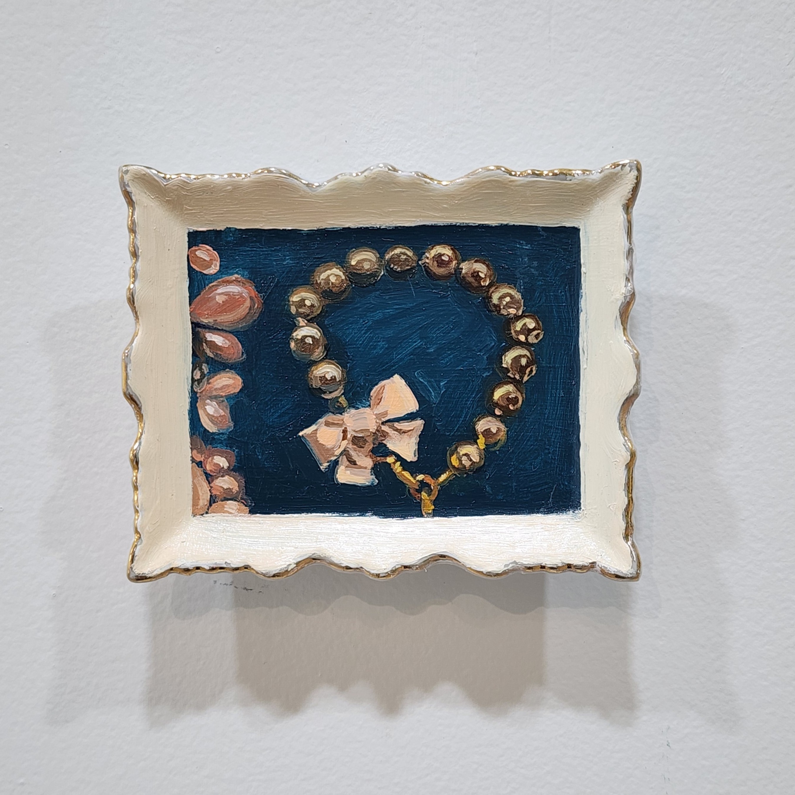 - Four oil paintings on found ceramic (wall mounted), each approx 80 x 95 mm
