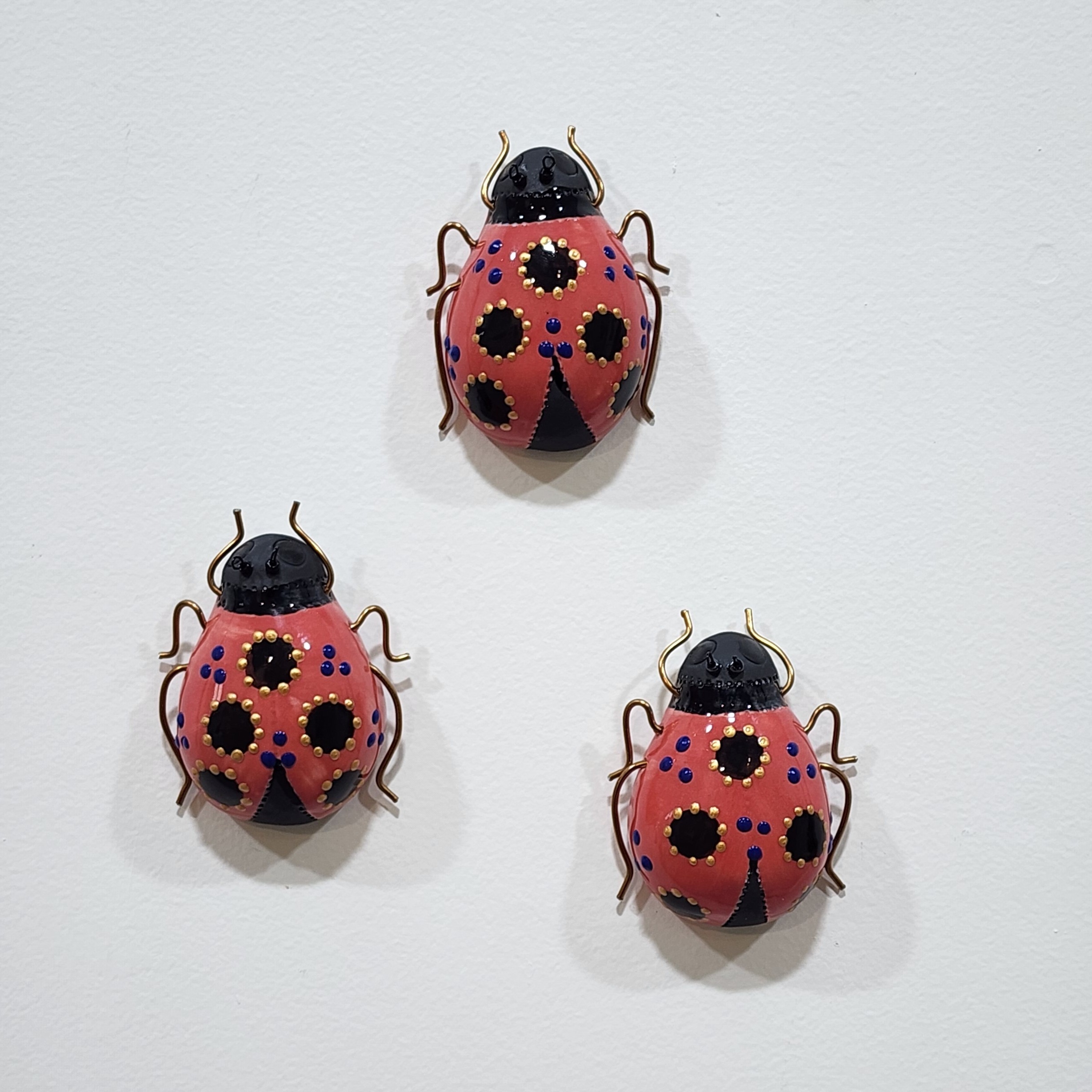 - Whimsical Ladybirds (wall mounted), earthenware and mixed media, each approx 70 x 50 mm