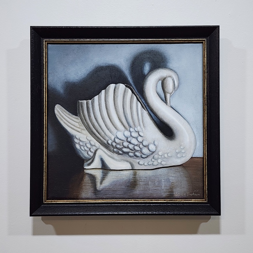 Birds, moths, crockery, skulls and childhood toys are all recurring subjects in Lee-Ann’s artworks; preserving in paint imagined moments, memories, and the passing of time.