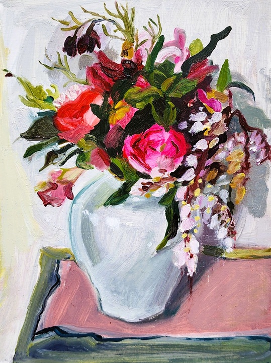 "I started painting flowers a few years ago. More recently, the flowers in my paintings are foraged, either from my own garden, a neighbour's, my mum’s, along the side of the road, in a ditch, or some other random spot."