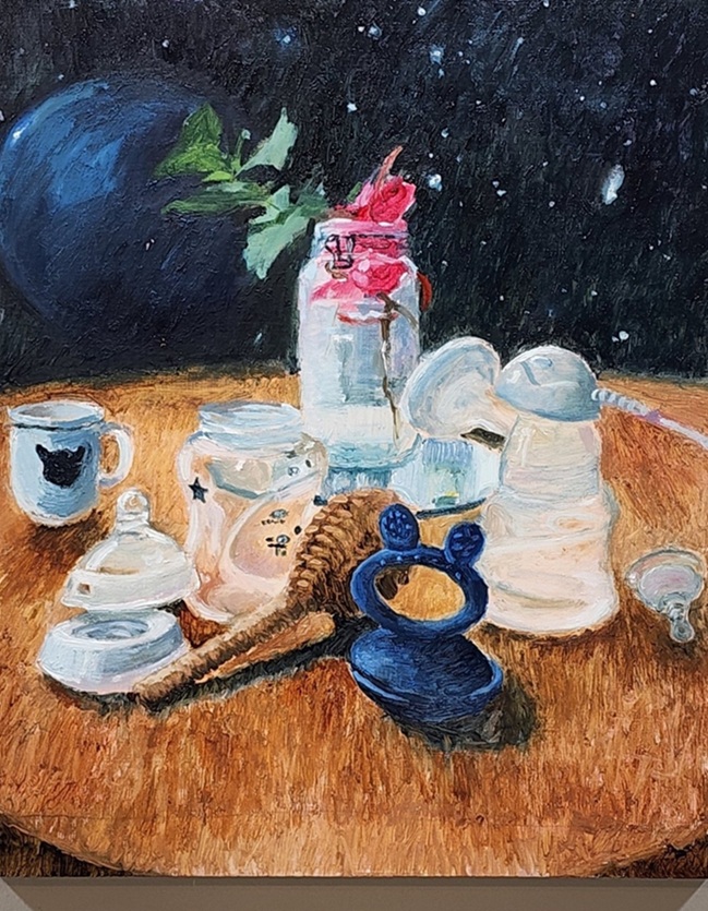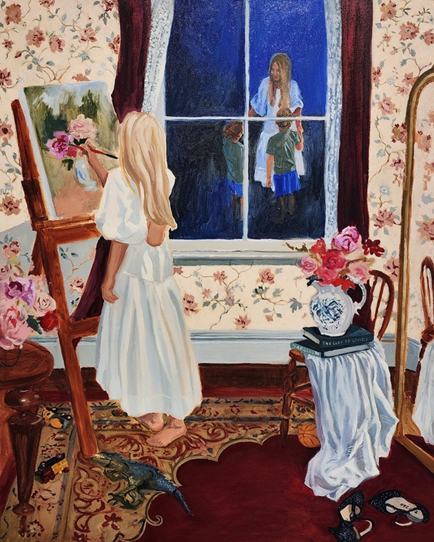 “As my life changes, so does my artwork. Mostly it is an ongoing theme of motherhood and domesticity. But as my children grow older, I have more time to reflect and remember my own childhood and identity, and this is reflected in my artworks.”